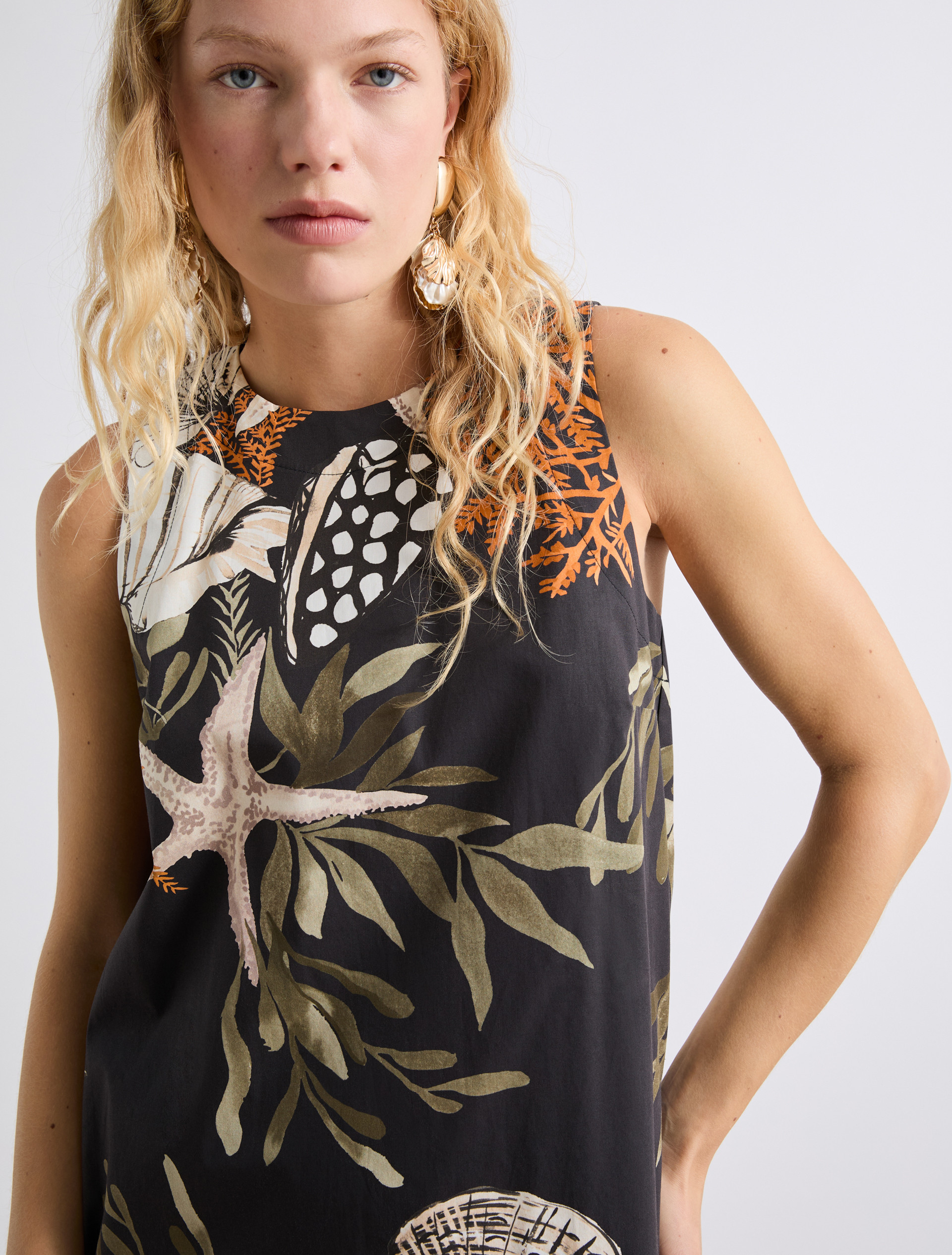 Sleeveless poplin dress - BLACK